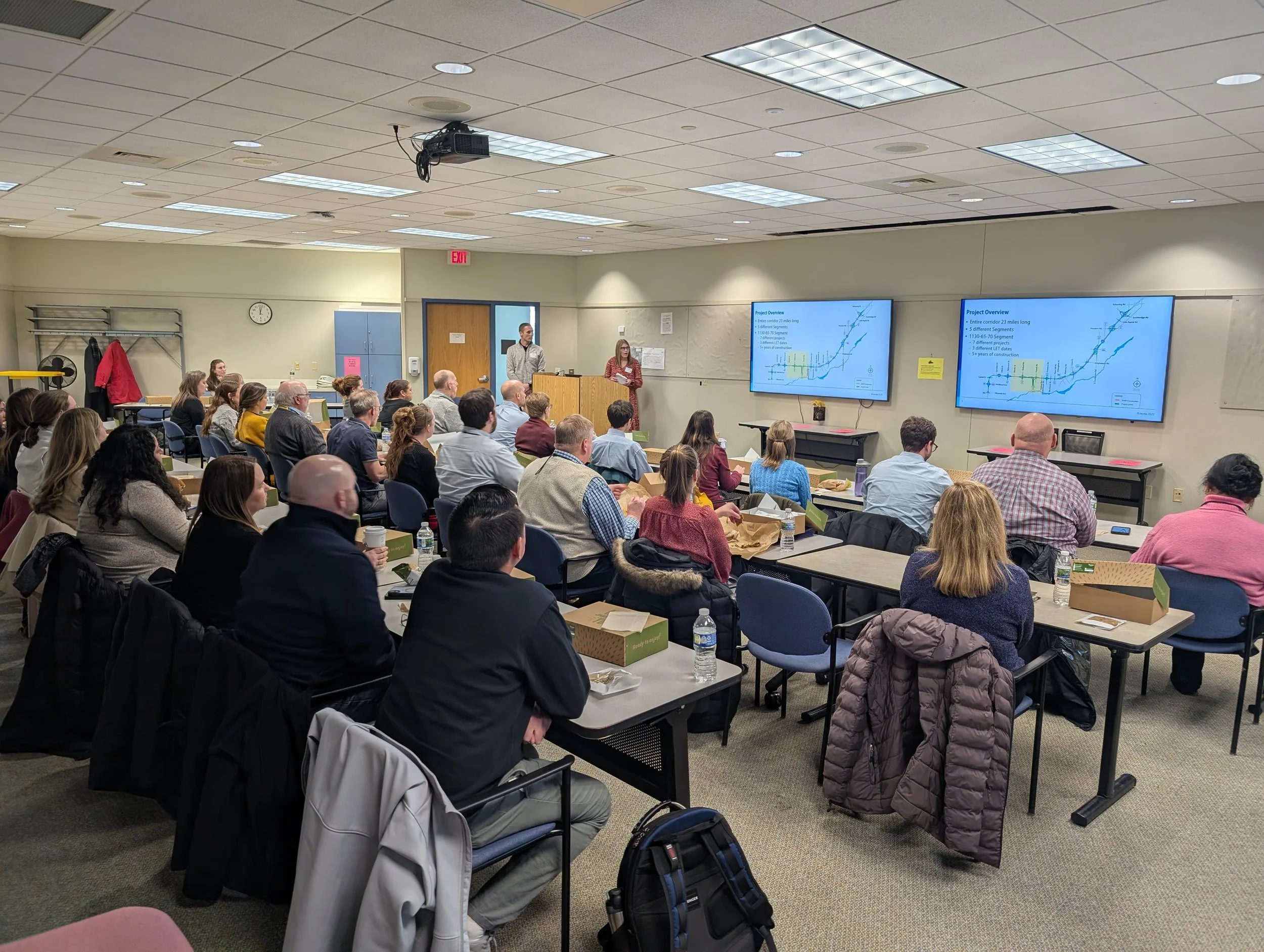 Attendees heard from I-41 design team members Brian Genskow PE and Sara Brozovich PE who discussed the I-41/USH 441 System Interchange and project staging. Brian is a Project Manager at SRF Consulting Group and served as segment staging lead. Sara is a Roadway Design Engineer at Jacobs Engineering Group and served as a lead roadway engineer. This event included lunch, networking, a presentation, and time for questions.